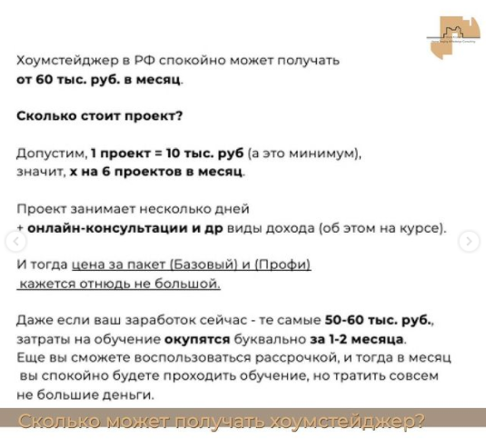 На самом деле, больше! Сейчас уже многие выпускники открывают свои агентства и тогда доход кратно увеличивается. Я знаю коллег на постсоветском пространстве, которые зарабатывают миллионы на хоумстейджинге.
